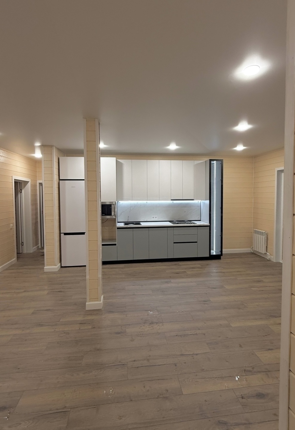 По планировке имеет три раздельные спальни, просторную кухню-гостиную, гардеробную и санузел!
