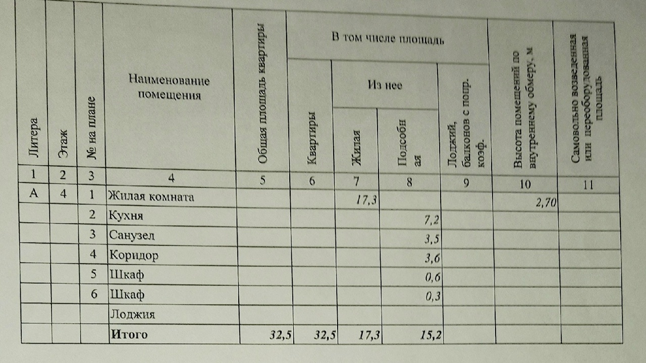 - общая площадь 32,5 кв.м.