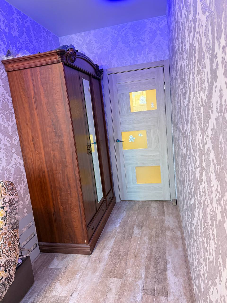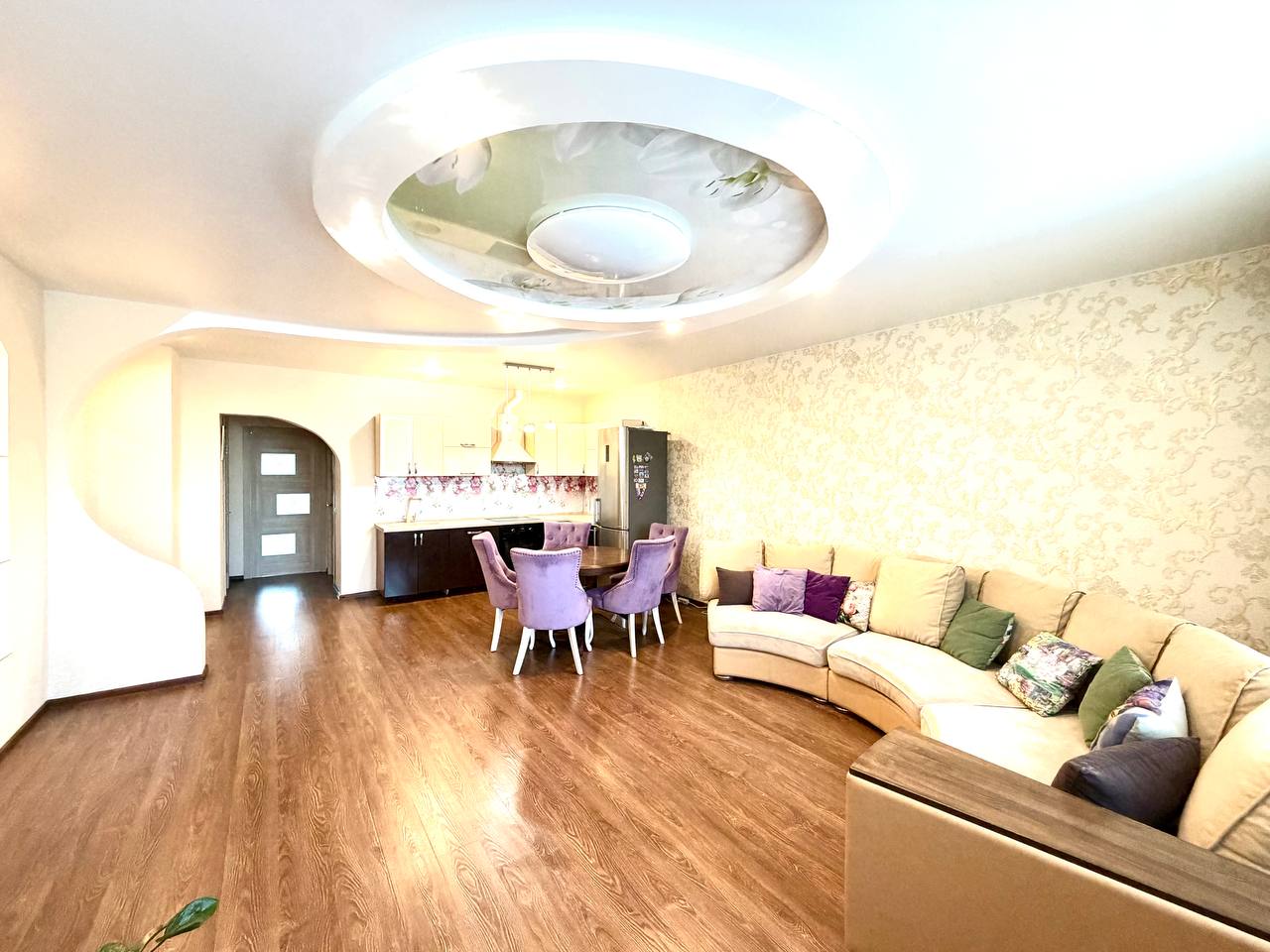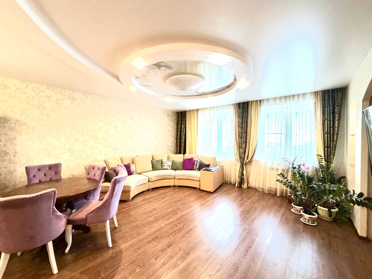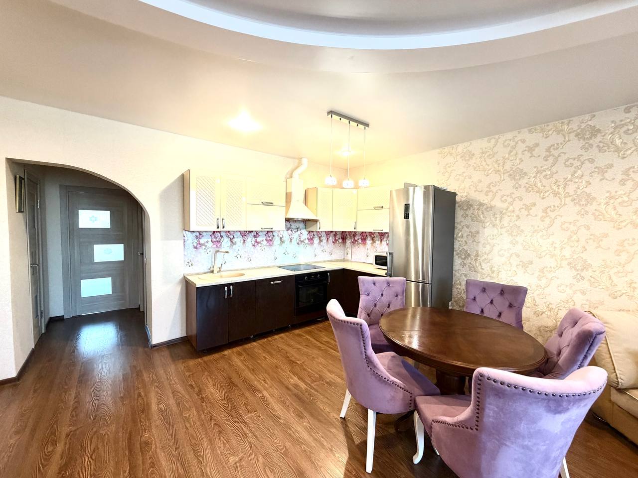 Из мебели остается вся комплектация, кроме сиреневых стульев и обеденного стола.