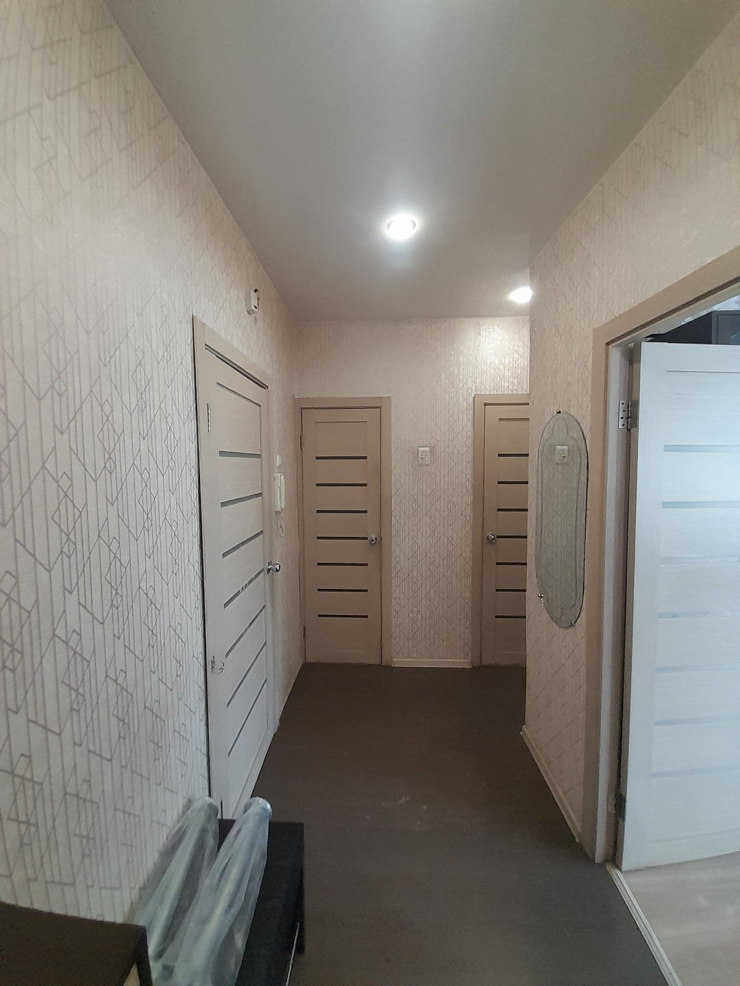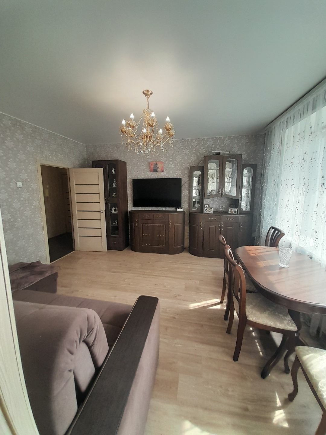 + во всей квартире пол-ламинат, натяжные потолки;