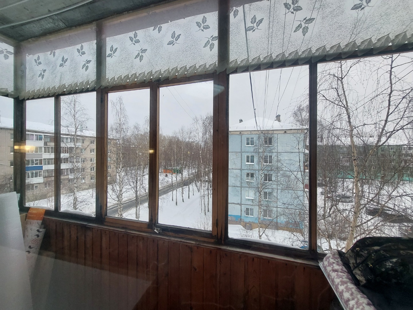 Балкон застеклён экологичными деревянными рамами.