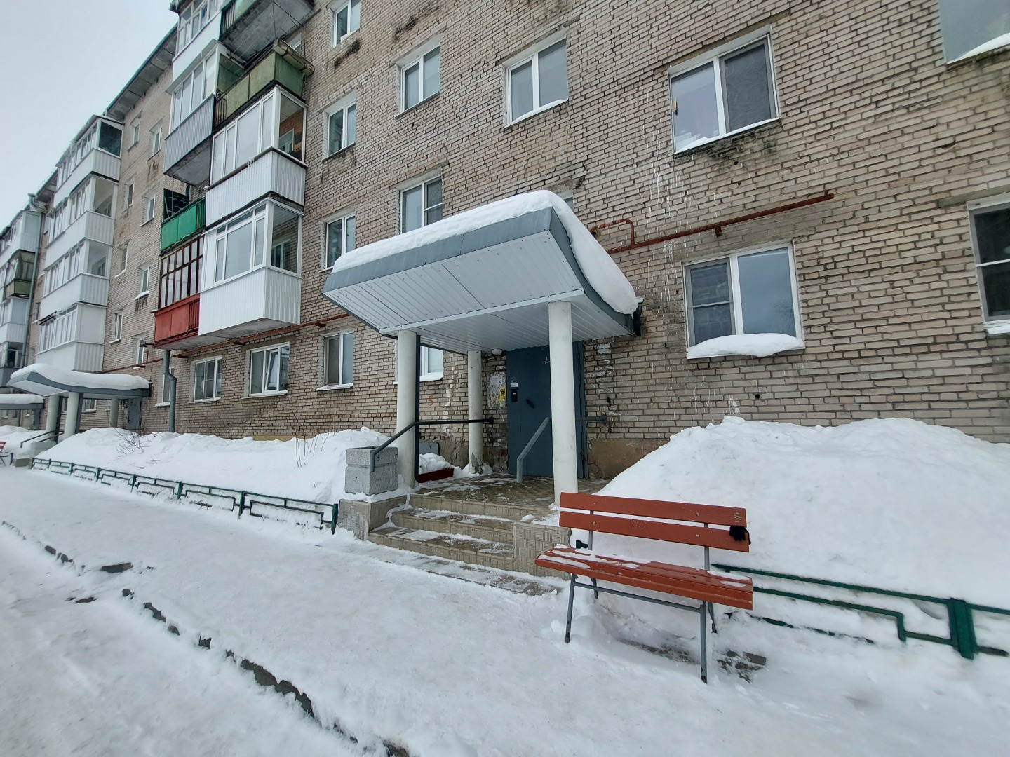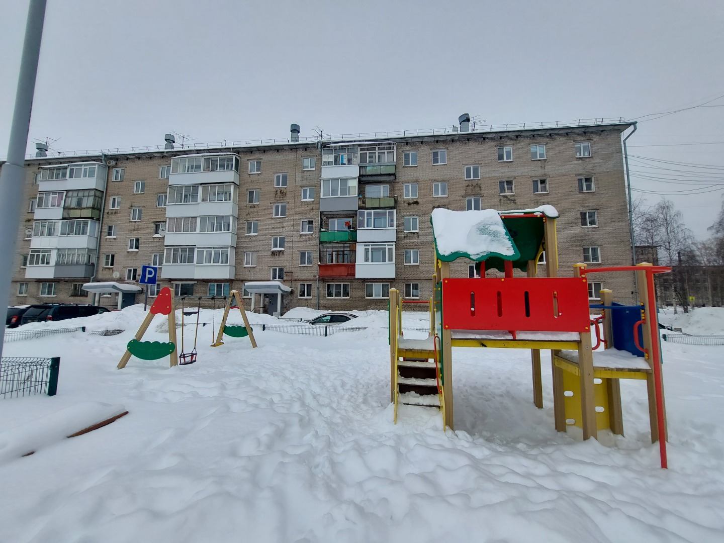 Выполнен качественный ремонт входных групп с установкой надёжных козырьков, полным обновлением крылец. Установлены скамейки у подъездов. Организована удобная вместительная парковка, которая регулярно чистится местным дворником. Детская площадка с ограждением от автомобилей.