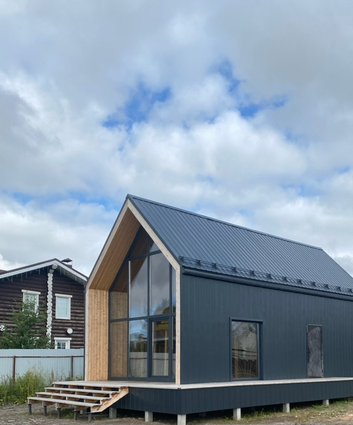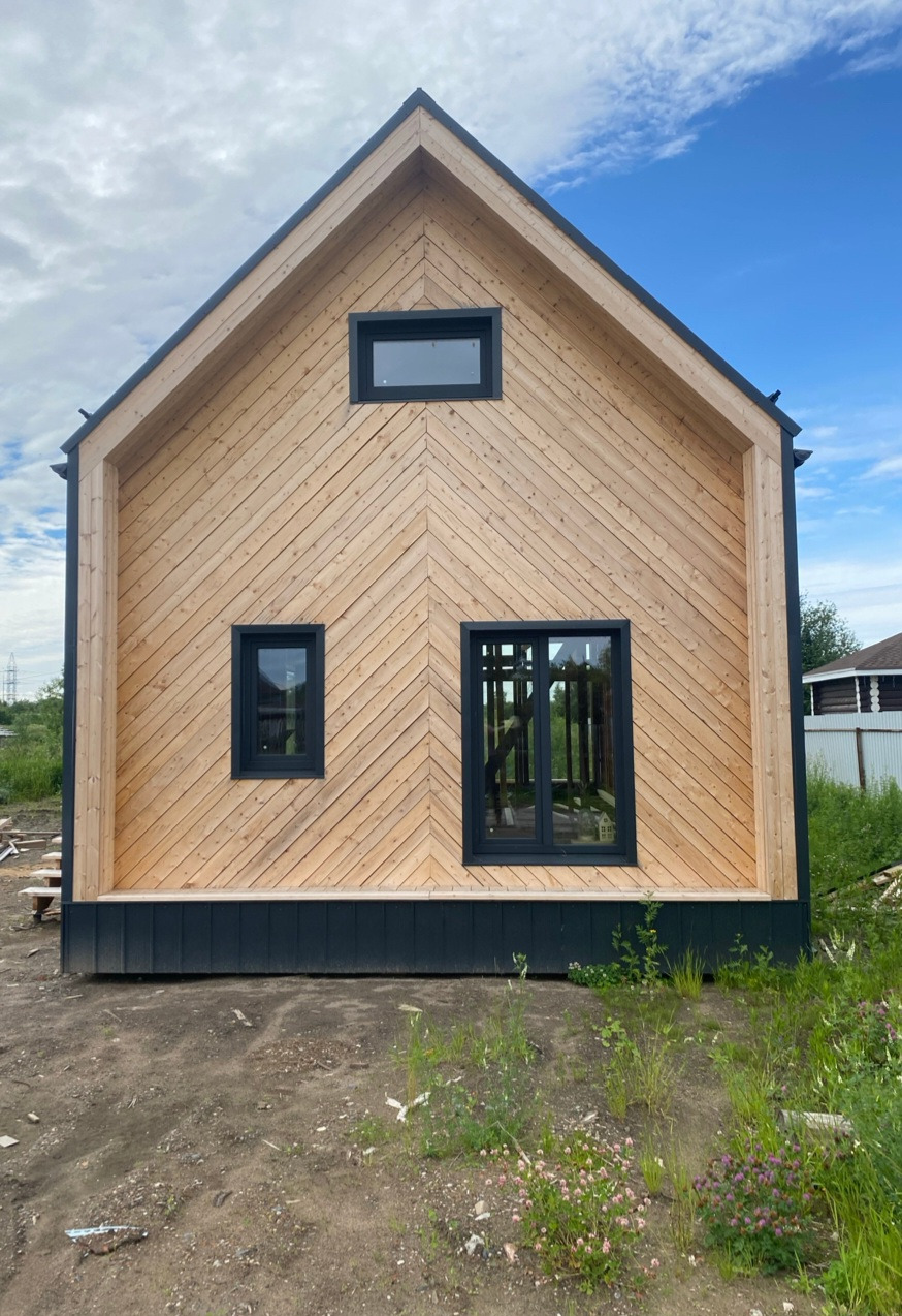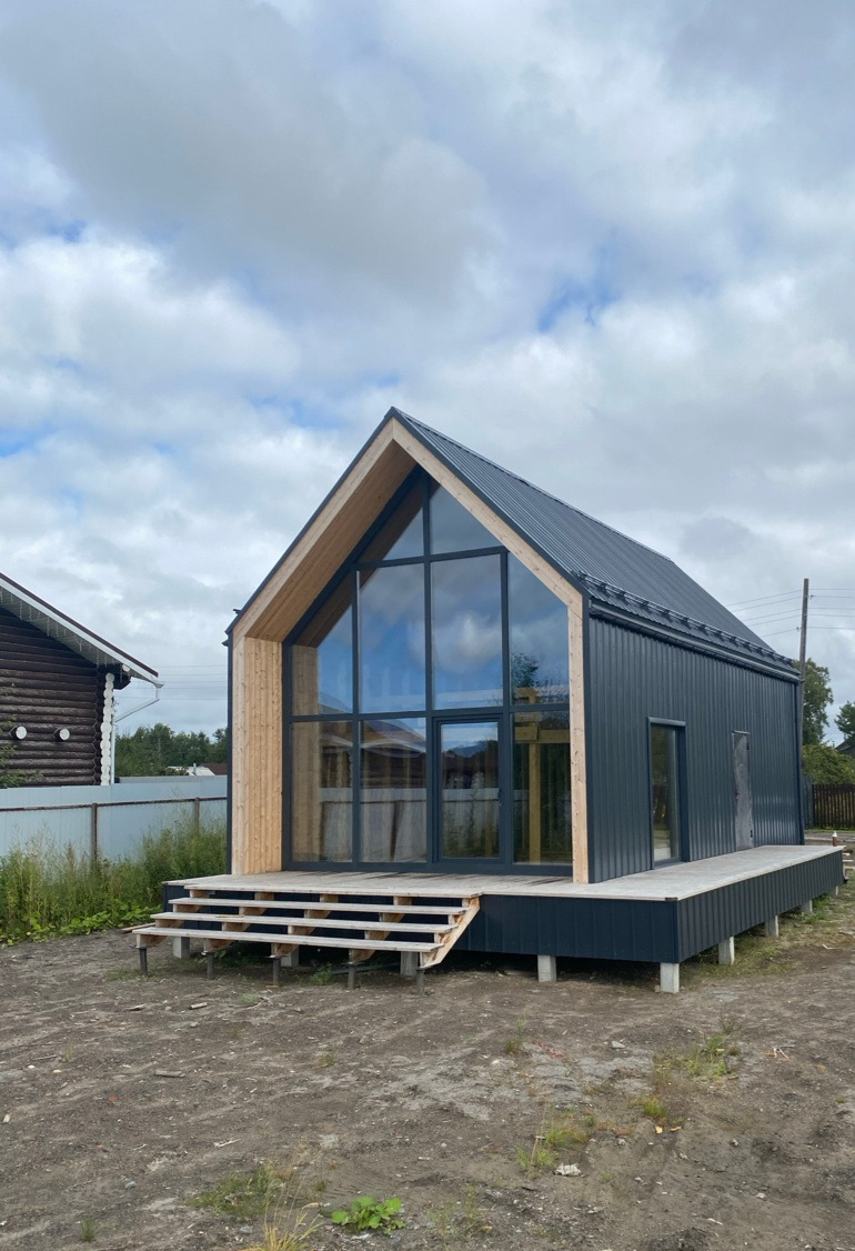 Дом для круглогодичного проживания, площадь 73 кв м, и две террасы 25 кв м, второй свет, высота потолка в кухне гостиной 6,5 метров,